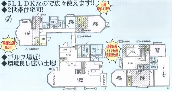 広々としたLDK2ヵ所のため、2世帯住宅も可能◎\nゴルフ場に近い広々とした土地◎