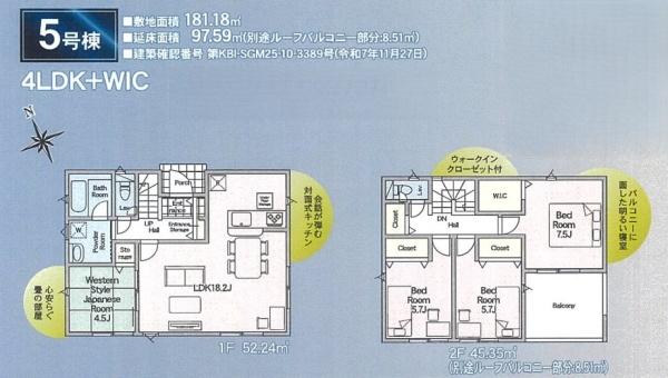 ルーフバルコニーあり♪ LDK16帖以上◎ 全居室収納つき◎ 洋風和室つき◎