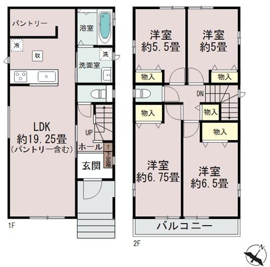 LDK19帖超え!食材庫に便利なパントリーつき♪車2台OK◎\n◆全居室に収納あり\n◆全室2面採光